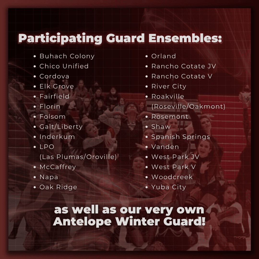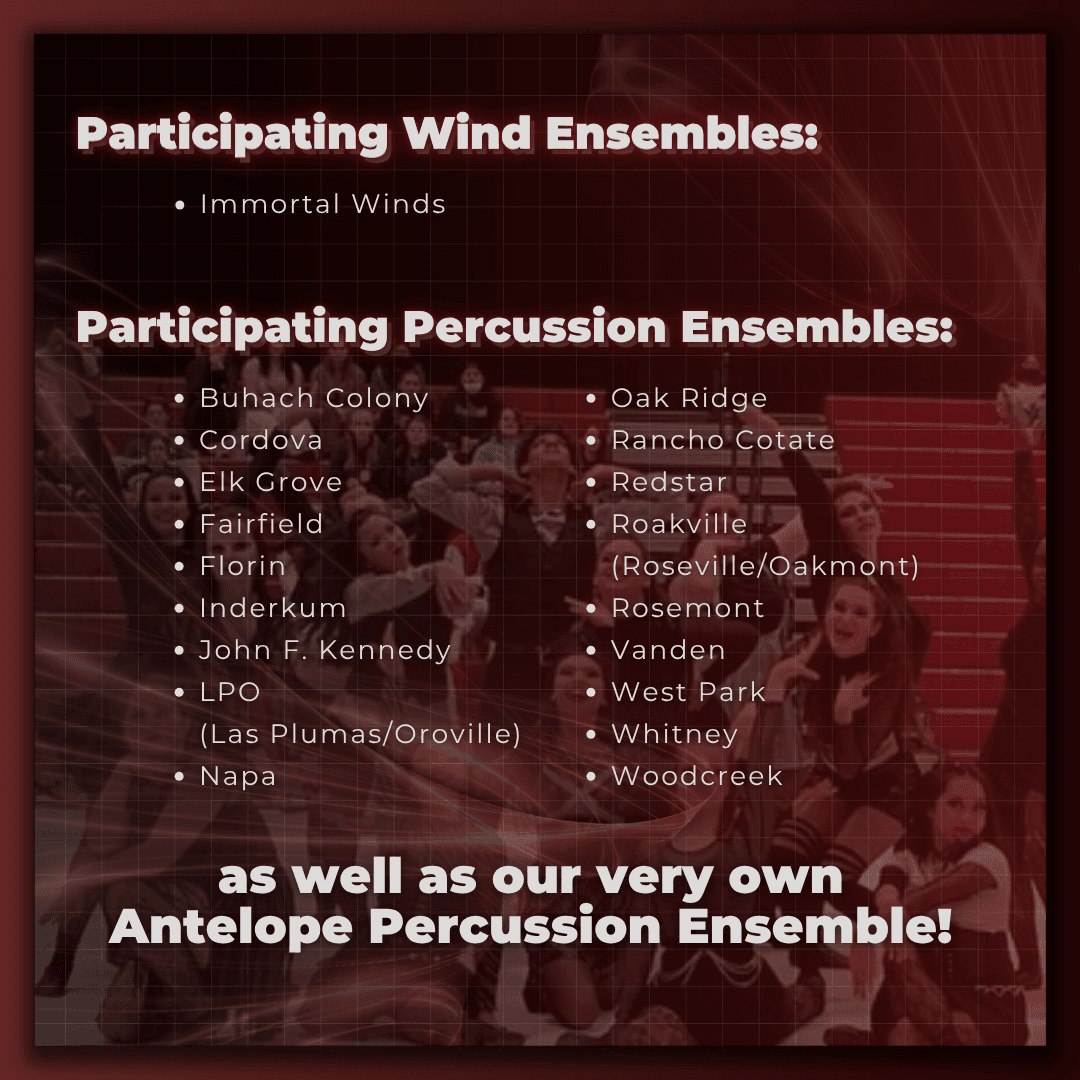 I designed and published a series of social media graphics to promote Antelope High School’s 7th Annual Winter Review, a competitive music event featuring 27 ensembles from across Northern California and drawing an audience of 1000+ spectators. In addition to building excitement and public awareness through engaging social media content, these designs also served a functional role by clearly communicating event logistics.